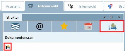 In the PARTdataManager under Part selection -> Structure, select the Document scan tab page.
