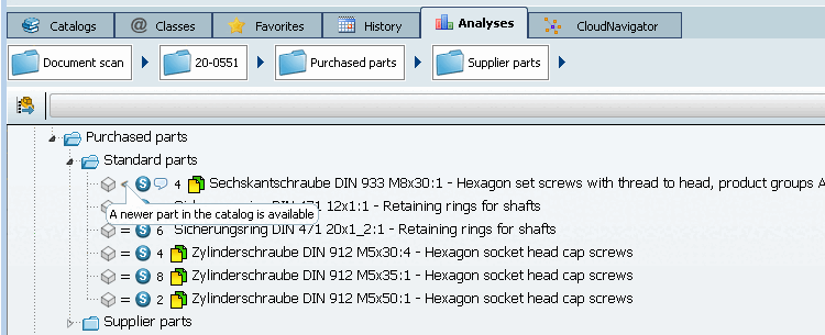 During the check for up-to-dateness the assembled 3D parts are compared with the current catalog state.
