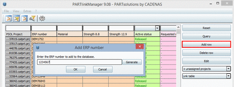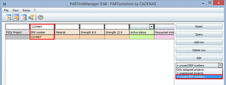 In order to assign a new ERP number to a part with PARTlinkManagerdo the following: