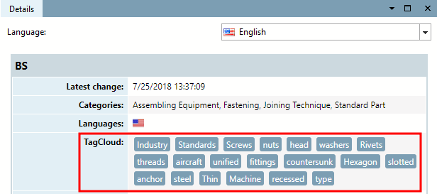 The search functionality in PARTdataManager can be supported for each catalog with the TagCloud.