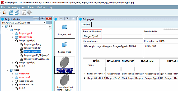 PARTdataManager "Parts selection [Part selection] ": Use of project previews - selection at catalog level. The groupings are generated automatically.