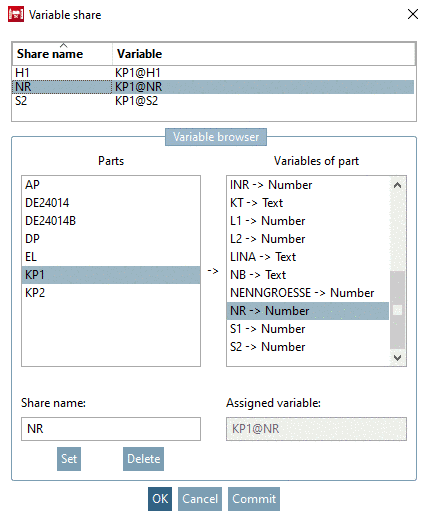 Select part and variable of the part (here KP1 and NR).