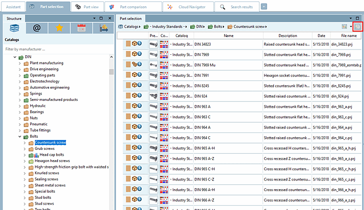 The elements of the next level down are now displayed on the right in the part selection [Part selection].