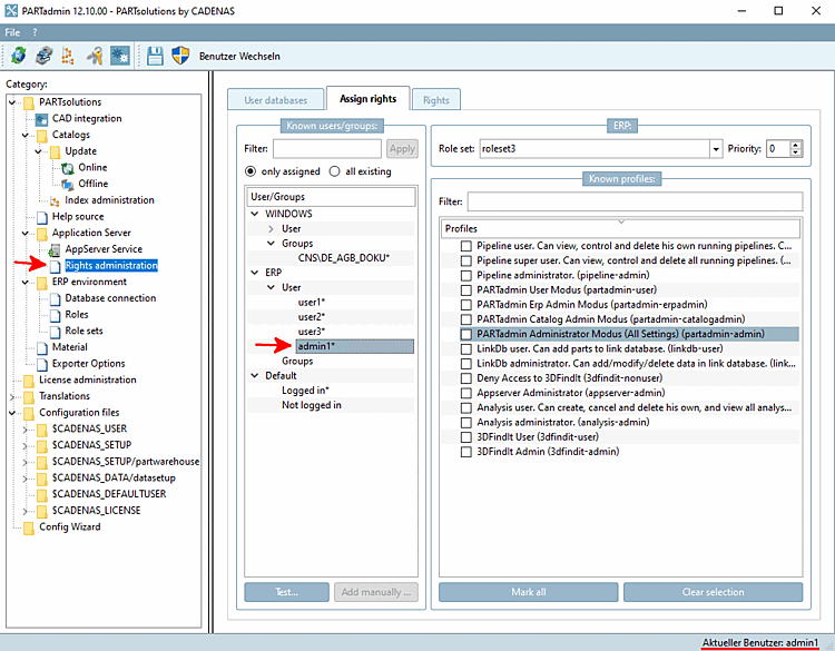 Activate the PARTadmin Erp Admin Mode (partadmin-erpadmin) profile in the Known Profiles [Known profiles] dialog area.