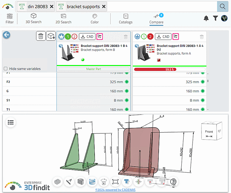 → The displayed parts are loaded in comparison.