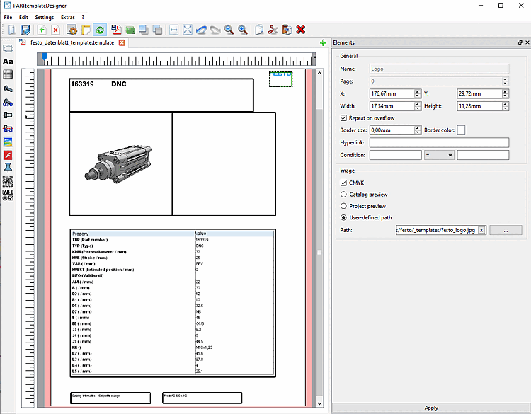 The following figure shows an exemplary section of the PARTtemplateDesigner user interface.
