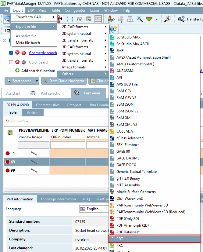 The PDT format is designed for the structured transfer of product information. PDT stands for Product Data Template and was initially defined as a structure by the CIBSE (Chartered Institution of Building Services Engineers) in the UK. The carrier format of the information is usually Excel documents that are structured according to the PDT structure. CADENAS has mapped the structure of the available templates in a classification and offers the output / carrier format Excel as a file export. The prerequisite for this is a correspondingly classified catalog part. In the event that an eCAT project is not classified, a MASTER_TEMPLATE has been defined and is included in the software. The other product-specific templates are maintained and distributed via the classification.