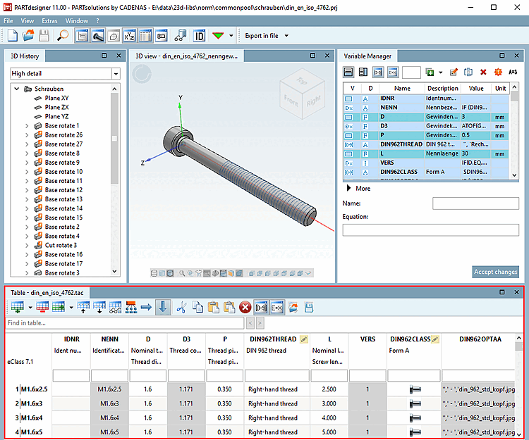 If you open the PARTdesigner in the File menu [File] or load a tab/tac file via Open, the Table docking area (next to the variable manager [Variable Manager] ) automatically receives an enlarged workspace. Further docking windows are generally not required here.
