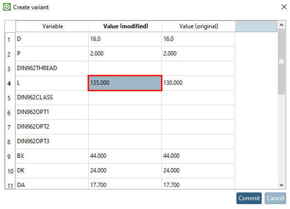 As a result, the created variant is also displayed in the PARTdataManager is displayed.