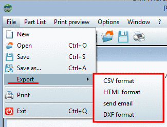 Depending on which export format you choose, the corresponding form areas are also exported.