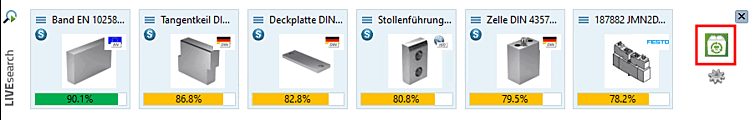Depending on the setting, results are loaded in PARTdataManager or seamless are loaded. You can recognize the selection by the corresponding button on the right in the LIVEsearch dialog.
