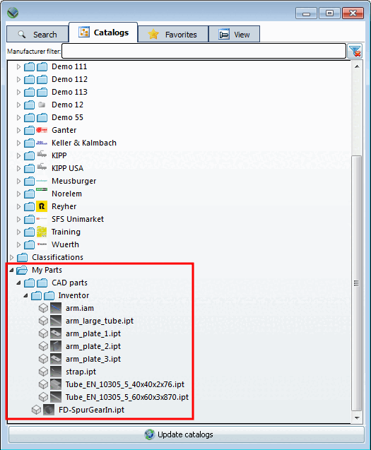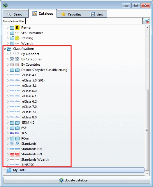 Use the manufacturer filter [Catalog filter] if required. (Useful if many catalogs are installed)