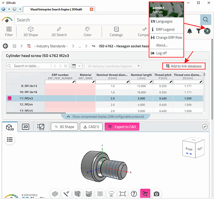 The Add to link database function in 3Dfindit or PARTdataManager is available on the standards body side.