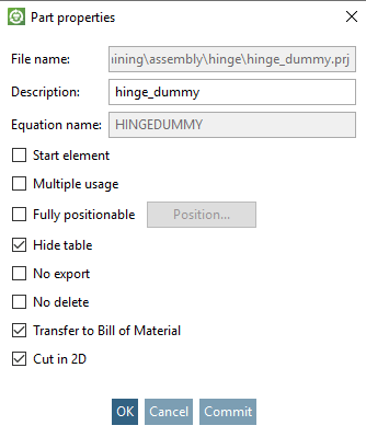 In the Part properties dialog box dialog box, the Hide [Hide table] table checkbox must be activated for all parts, except for the dummy part.