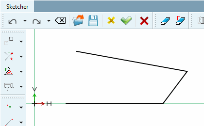 (The order makes no difference.) It is possible to place the chamfer outside the shape, see section Center chamfer on 2 lines via distance to intersection [Chamfer centered at 2 lines defined by distance to intersection].