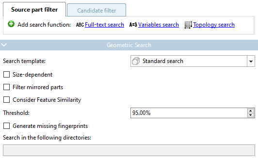 If, for example, you only want parts with drill holes in the result, set a search with Hole -> Quantity [Amount] > 0 on the Candidate filter tab page.