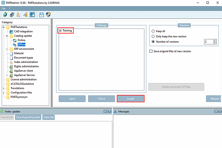 Before you start working in PARTproject please install the file training.cip using PARTadmin.