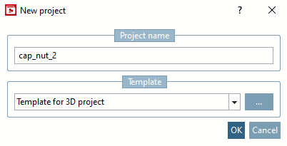Enter the name of the new project and select the option Template for 3D project (list box) under Template.