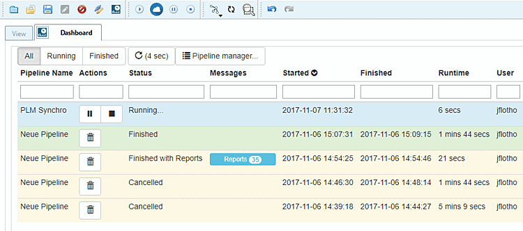 The dashboard provides you with detailed information on all processes (completed, canceled, running, failed).