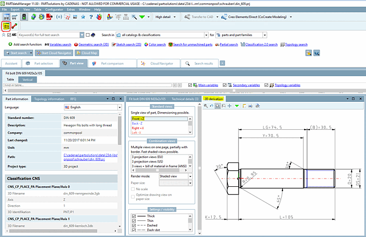 is displayed.The user can later change the characteristic to be exported here. Compare Section 3.1.7.6.6, “Change characteristic via dimension labels ” in ENTERPRISE 3Dfindit (Professional) - User