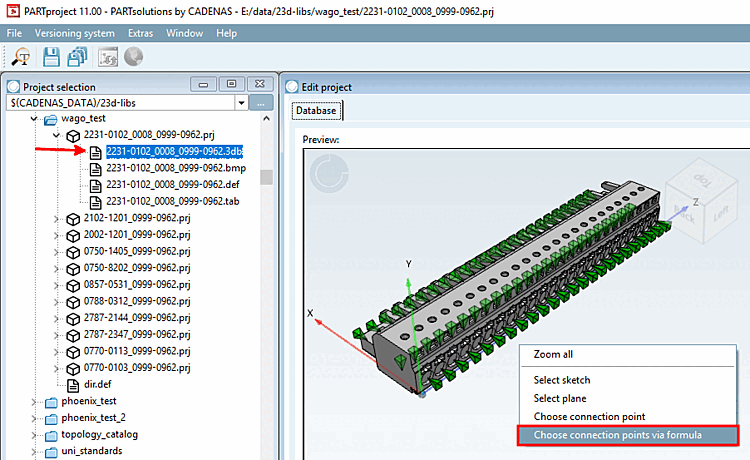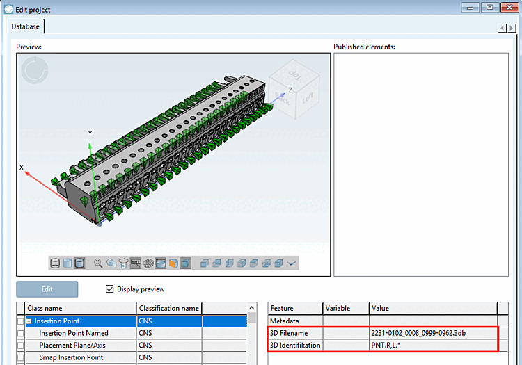 Select the 3db file. All available connection points are now displayed. All points are also displayed in the Select connection point [Choose connection point] dialog box. You can now classify individual connection points, which would not make sense in this case because a large number of connection points are classified in exactly the same way.