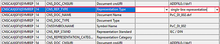 This is specified in the classification by the Representation type feature of the CNSCAX|GFX|SYMREP class. The mapping between 3D connections (CNS_CP|4|3 ) and 2D connections ( CNSCAX|GFX|1 ) can be omitted here. Compare Fig. „Data model symbol representation / layout“.