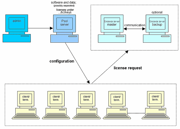 The PARTsolutions server (with PARTsolutions installation and the license directory) and the license server master can be the same computer in practice. |