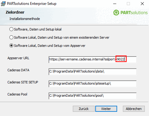 Later when executing the Client installation, this port number has to be stated in the AppServer URL.