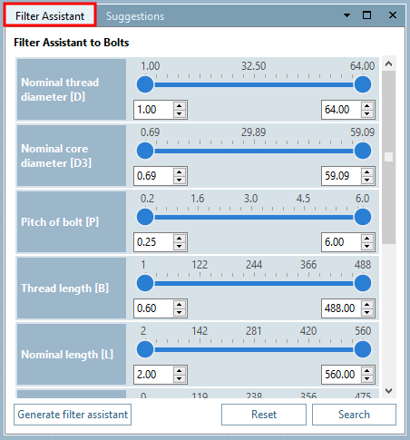 In addition, geometric variables that are common to the currently selected directory level are displayed in the dialog box. The figure above shows an example of the variables common to catalog Norm -> JIS -> Bolts - Screws - Nuts - Washers - Screws -> Screws.