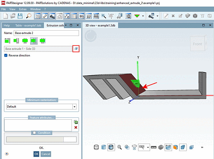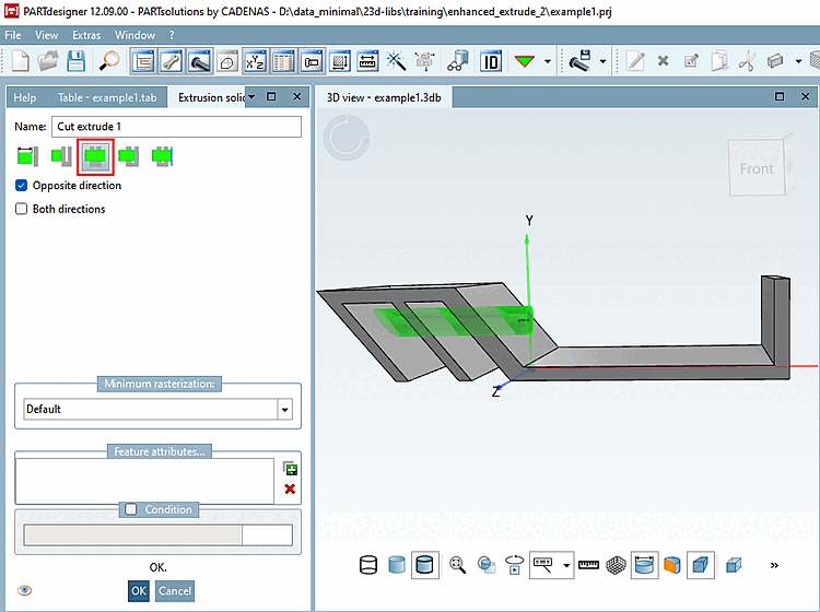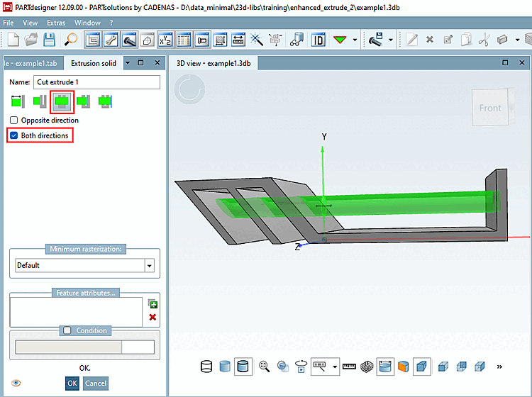 By activating the Both directions option, you can also perform the cut in both directions.