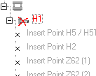 Example: A faulty part is marked with a red X. If the connection points can be calculated anyway, they are depicted in gray text color.