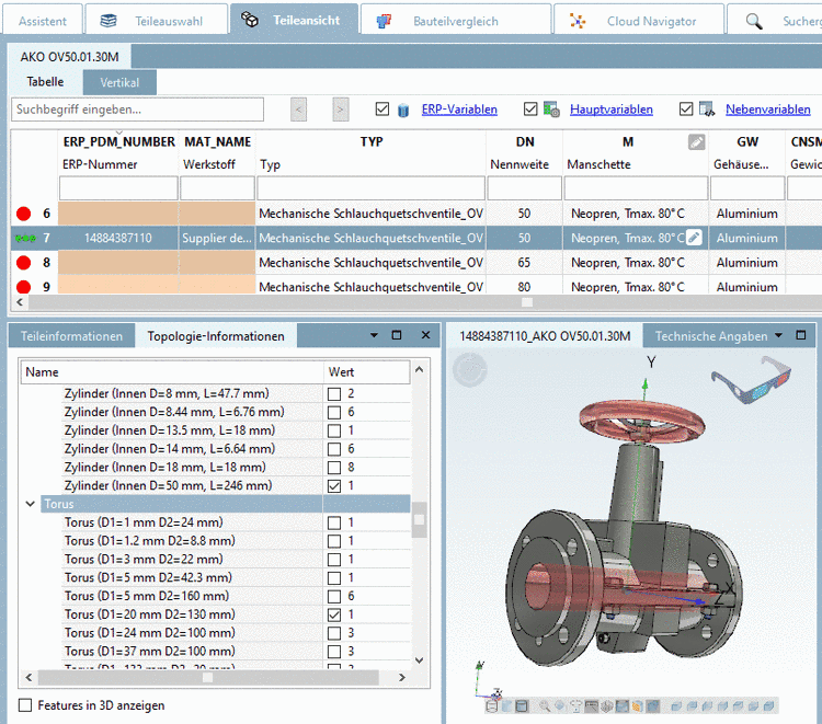 In order for single parts not have to be drawn into the part compare just to see Topology information, it is displayed directly in the Part view .