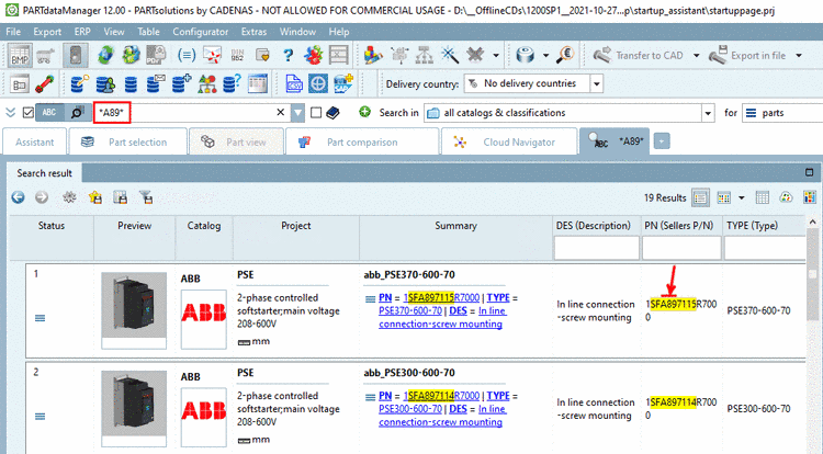 In this section you can find the PARTproject action names of menus and menu items, toolbars and buttons.