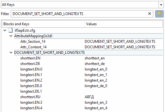 Syntax: Key name is "shorttext", followed by a token for respective language (e.g. DE, EN, etc.).