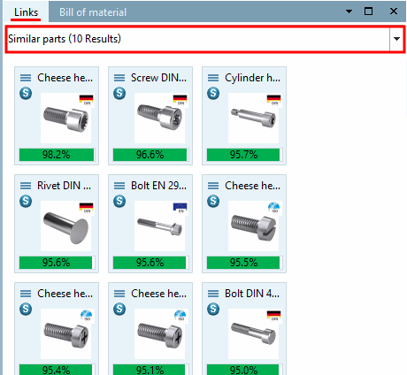 The geometrically similar parts are displayed under References [Links] -> Similar parts.