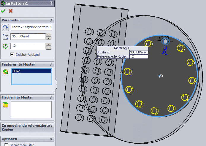 placed and the dialog box opens with the question "Create a pattern of this part based on the existing pattern?".
