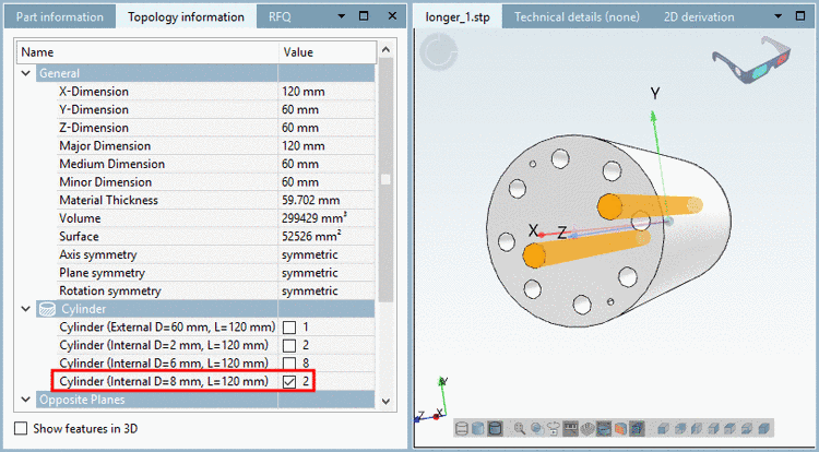 Index tree and "Symbols" section: Colored assembly and part (with ERP integration)