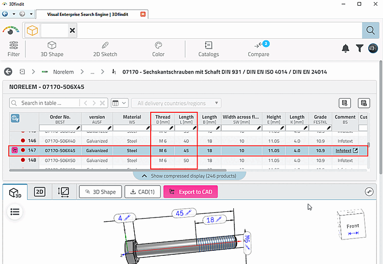 For example, open the first/best match. This part would be, for example, an almost identical replacement part (99.7%).