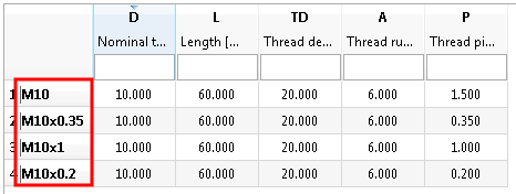 NAME = GETTHREADTEXT(D,'DIN 13','',P,'NAME') // ergibt z.B. M10x1