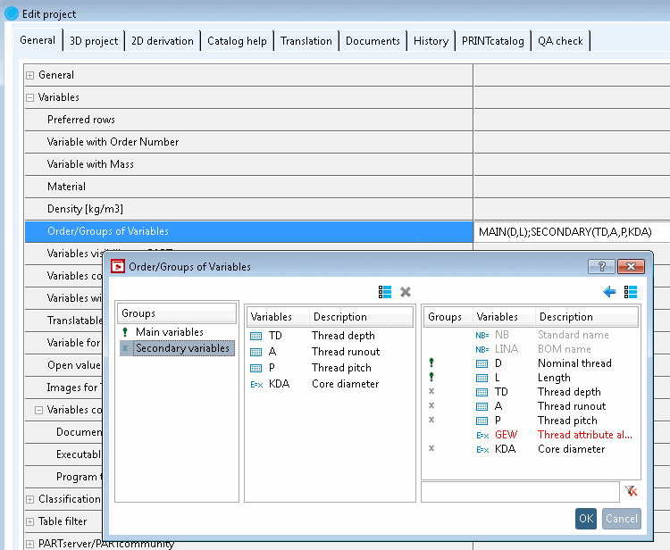 Calculate core diameter [Core diameter] external thread [Outer thread] automatically and display in PARTdataManager