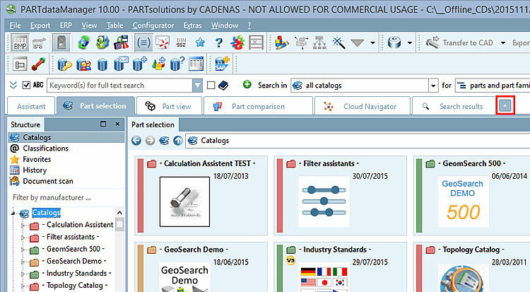 The key TABBAR_PLUSBUTTON_ENABLED controls the visibility of the Plus button (tab) in PARTdataManager.