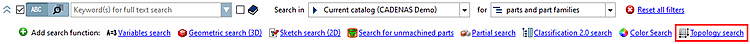 The topology search [Topology search] is particularly suitable where individual features such as size [Size], distances [Distances], angles [Angle], patterns [Pattern], etc. may be more characteristic than the shape. It can be carried out without textual information and without a reference part. It is also suitable for "feeling your way" to the desired part. Result parts of a search can provide (new) search terms via the part information or serve as a reference part for a subsequent geometric search.
