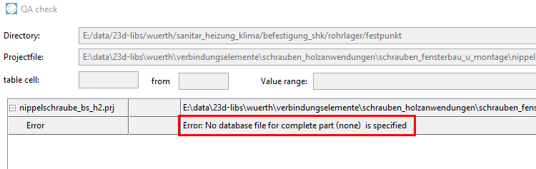 The entry of at least one 3D model is mandatory! If no 3db file is specified, the corresponding error message appears in the TestMeta in the QA Check [QA-Check] dialog box.