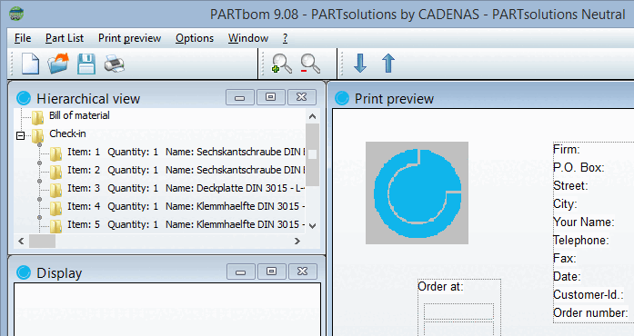 PARTbom (bom = bill of material) is an administration module with which you can compile parts lists for orders of components and assemblies. You can find a detailed description of PARTbom under Section 3.2, “ PARTbom ”.