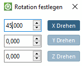 opens the Specify rotation [Set rotation] window. Enter a numerical value and click on the corresponding "Axis button".