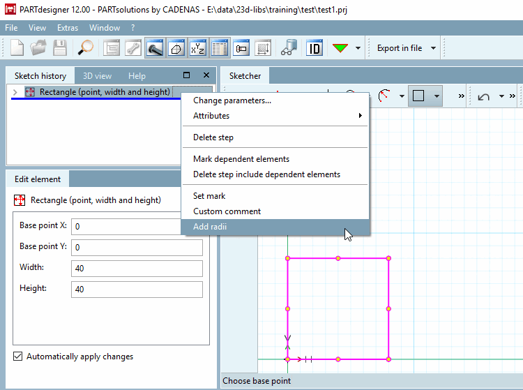function.You can now also make changes to individual fillets (or several). Select the desired ones in the sketch history [Sketch history] or in the Sketcher.