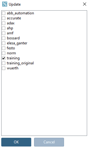 If you start PARTadmin with the parameter -updateDB, PARTadmin determines all installed catalogs whose update status has not yet been updated in the link database. These catalogs are listed in the Update dialog box. By clicking on OK, the catalogs are then updated in the link database.