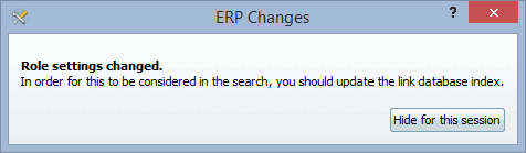 Immediately after a role change, PARTadmin displays the message that it is necessary to update the link database index.
