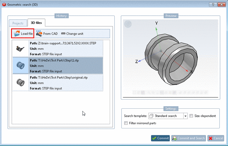 In the dialog box Geometric search (3D), click on Load file.