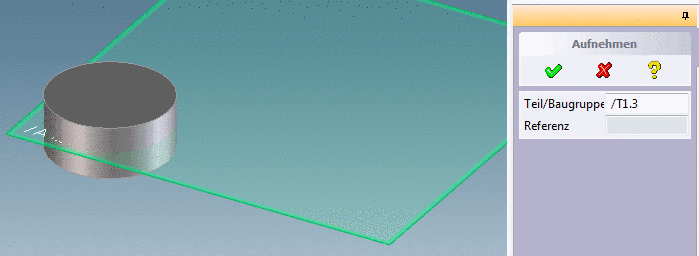 Select the part / assembly under Part/Assembly (Teil/Baugruppe) and directly confirm via